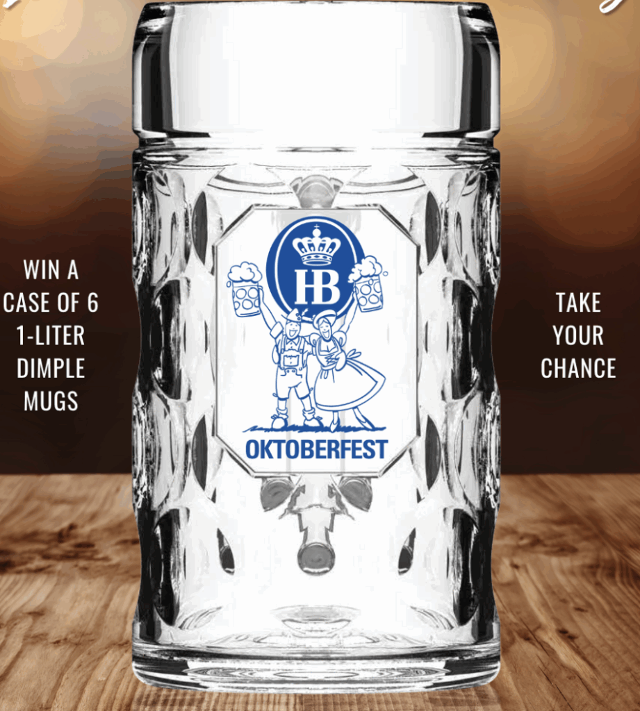 - Grand Prize (25 winners total): Each winner will receive six (6) Hofbräu branded 1-liter beer steins.