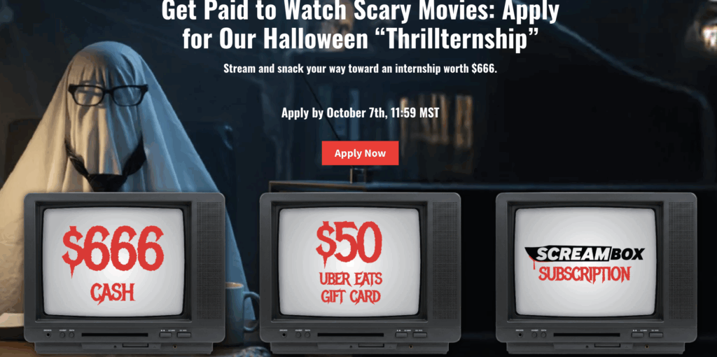 While there’s no secondary prize pool, the gig itself is the main attraction: getting paid to critique, rate, and survive five nightmare-level films curated by one of the web’s biggest cable and streaming authorities.